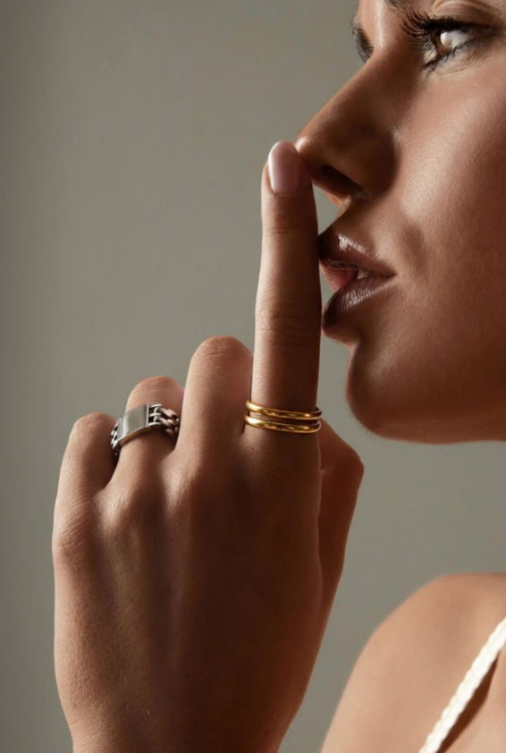 The Anoiktok ring carries quiet elegance and refined simplicity. Crafted in gold with an adjustable design, it offers a comfortable fit for any wearer. Minimalist and timeless, it embodies grace, balance, and understated beauty.