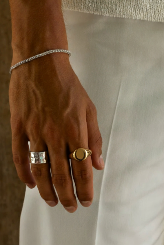 The Poseidon ring evokes a sense of steady strength and quiet presence. Available in gold and platinum, in sizes US 7, 8, and 9, it fits comfortably while maintaining a refined silhouette. Minimalist and timeless, it reflects balance and enduring elegance for any wearer.